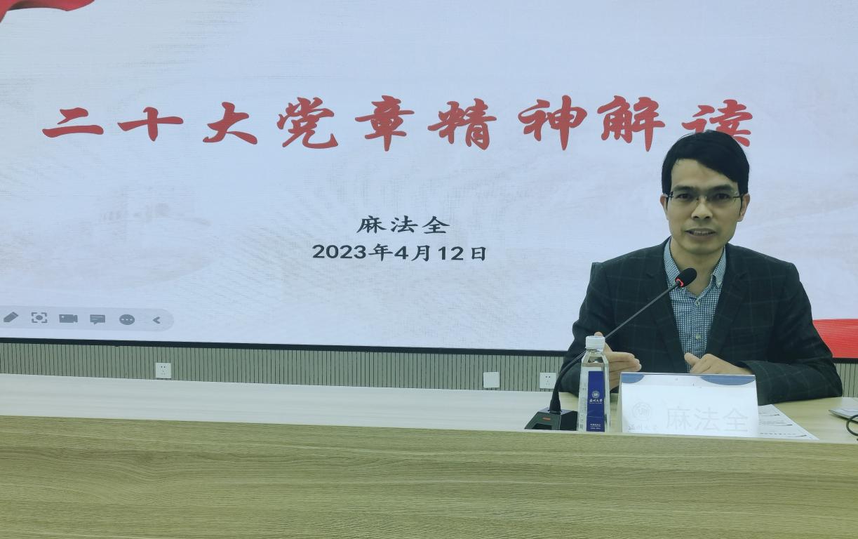 组织部麻法全副部长作《二十大党章精神解读》专题讲座,帮助引导全院教职工认真学习《中国共产党章程(修正案)》的内容与要点。