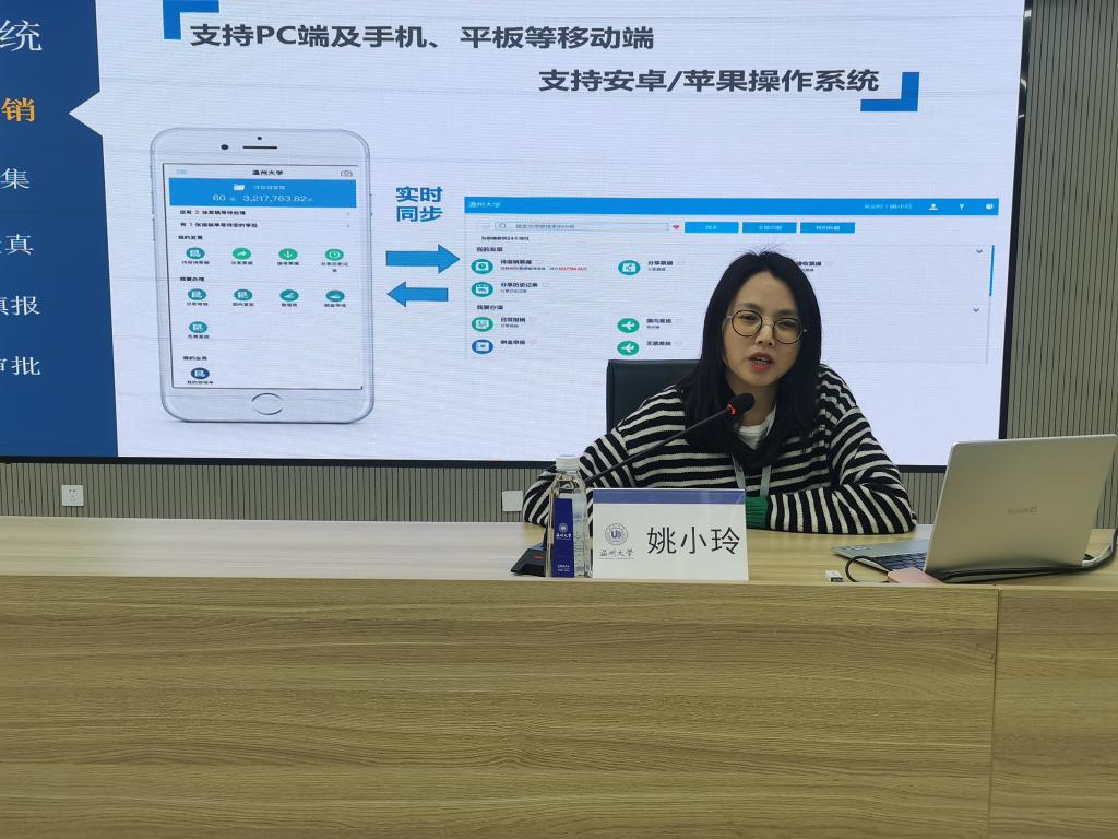 姚小玲科长介绍了移动报销、票据采集、识别验真、智能填报、网上审批等五大智能报销系统特色功能和我的发票、我要办理、常用维护、我的业务、我的审批等五大智能报销系统模块架构,分别详细讲解了从移动端和电脑端登录系统、上传票据、填报预约单、线上审批、打印投递等智能报销系统操作流程,并就报销过程中容易发生的不规范报销事项和财务风险举例说明、防范预警。