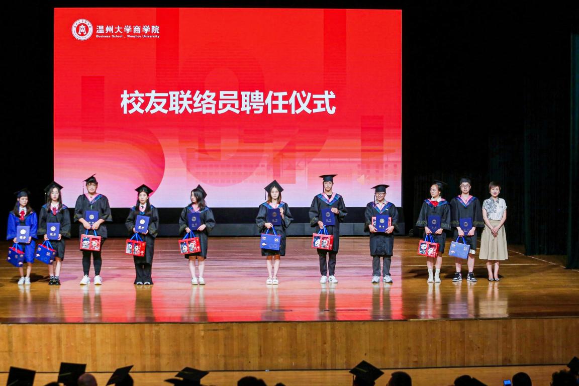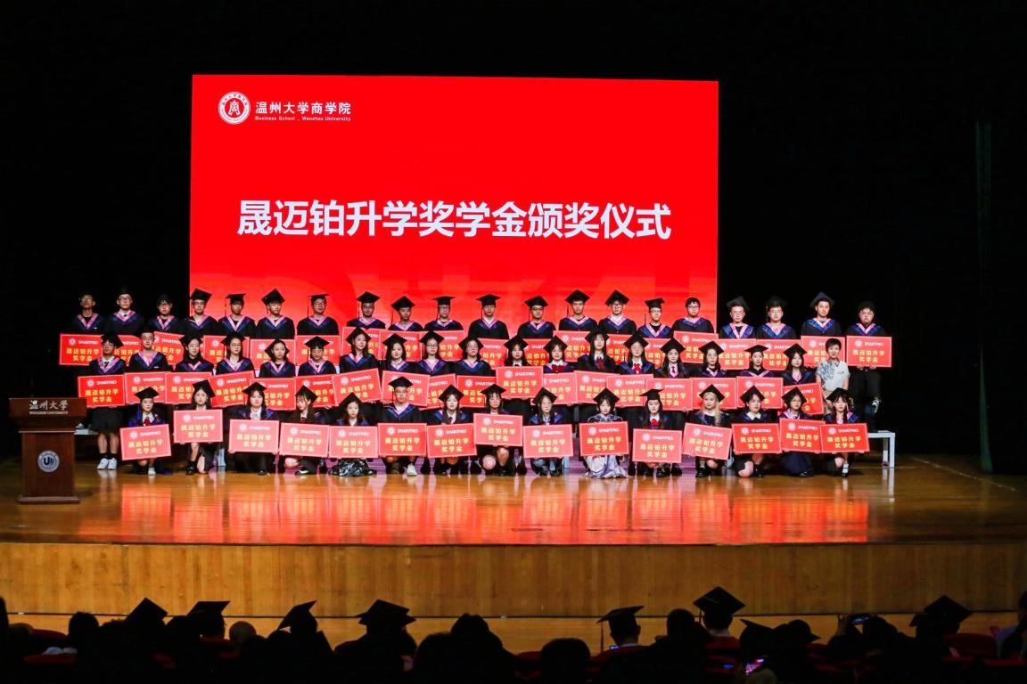 校友会副会长、93届外贸经济优秀校友、温州最迈铂贸易有限公司董事长莫欣为学院捐赠展迈铂升学基金,专项用于学生升学奖励。典礼现场,莫欣董事长委托李密书记为今年顺利升学的61名毕业生颁发奖状并送上诚挚的祝福。