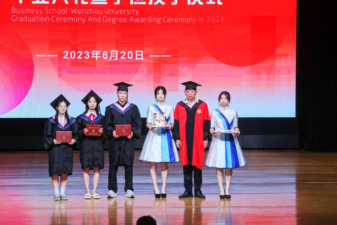 今天,恰逢三位毕业生的生日,为了庆祝这个特别的日子,学院为三位同学准备了生日惊喜,胡振华院长单独为同学们拨穗并合影留念。
