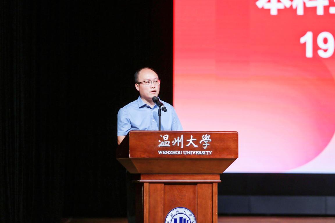 党委委员、毕业班19金融工程1班班主任毛华配老师作为教师代表发言,他回首了这漫长又短暂的四年,和同学们一起学习、一起奋斗、一起进步的时光。临别之际,他怀着高兴又不舍的心情对毕业生们提出四点建议与希翼:一是善待自己,用梦想照亮人生;二是保持学习,保持阳光的心态,三是学会感恩,回馈社会与国家,四是不断精进,完成自我超越。最后,他祝愿学生们在新的征程中不忘初心,一路成长!