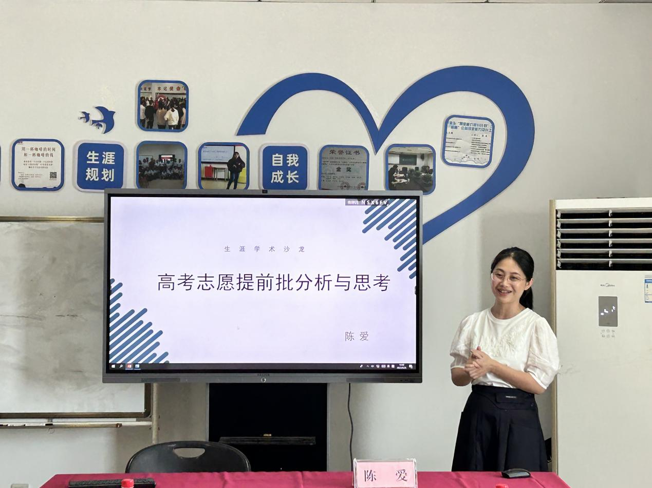 马克思主义学院专任教师陈爱老师分享主题为《高考志愿提前批分析与思考》的专题报告。陈爱老师分别从“为什么—高考志愿提前批招录目的、是什么—高考志愿提前批填报优势、怎么做—高考志愿提前批报考准备”三个方面作了深入浅出的介绍。她指出,提前批招录主要是为了服务国家优先战略、推动多元评价方式、促进教育机会公平,报考学生应根据自身优劣势选择提前批的类型,以选择喜欢的职业生涯,进而实现有效就业。