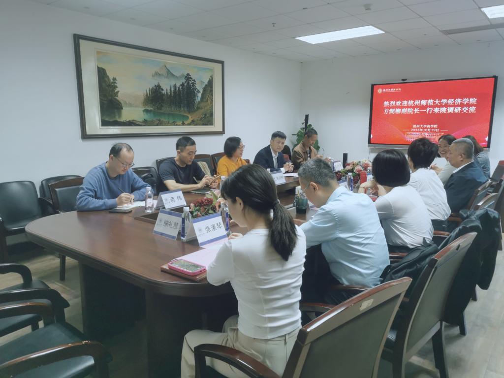 2023年10月19日的早上8点30分,杭师大经济学院的副院长方湖柳、院长助理曾绍龙、办公室主任张李铭、金融系主任卢锐和蒋伟博士一行莅临成人视频