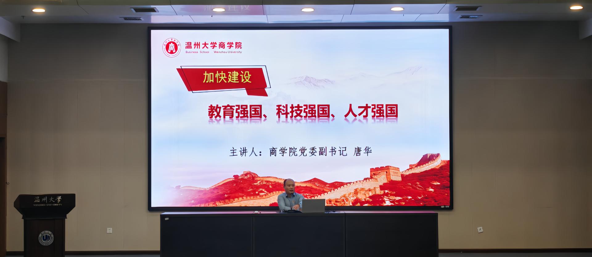 党委副书记唐华以“加快建设教育强国、科技强国、人才强国”为主题给学院2021级全体学生作专题党课。