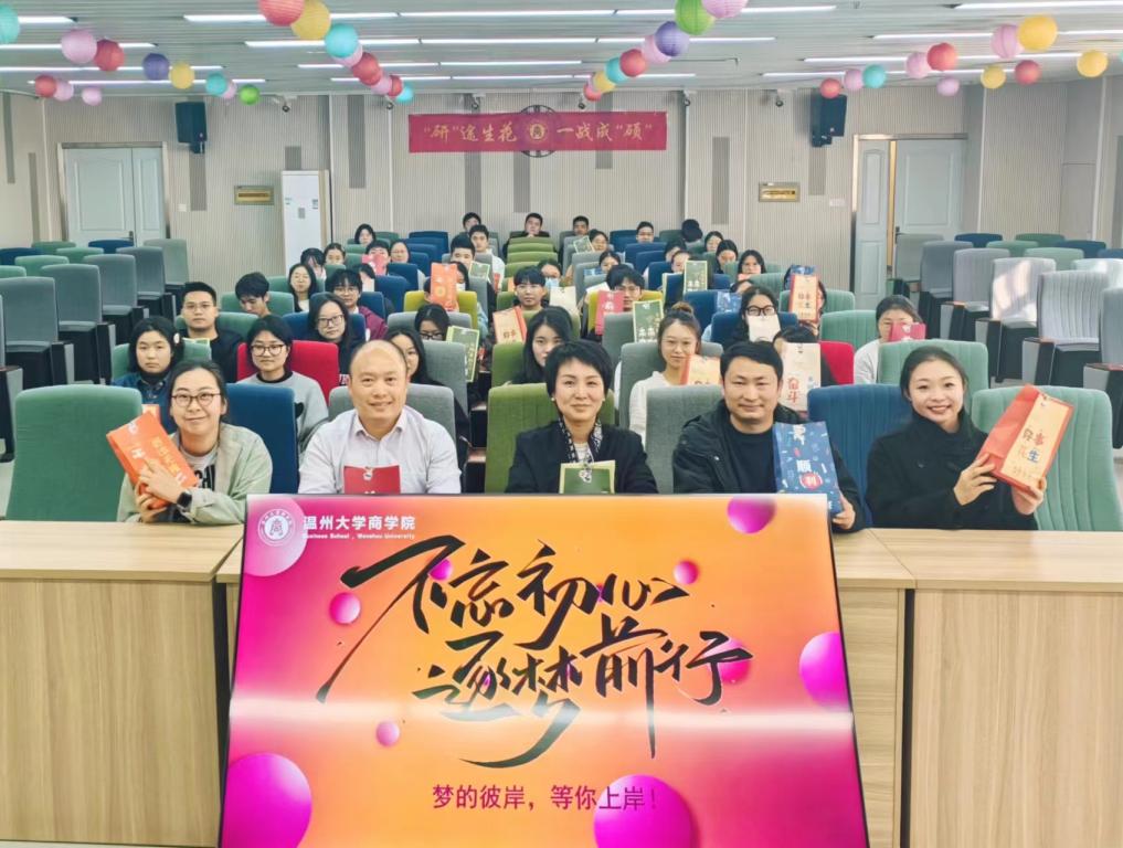 李密书记和唐华书记代表学院向考研学子表达了慰问、鼓励和期望之情,希望大家保持良好的状态,在剩下不到一个月的时间里能够坚持不懈,强调劳逸结合对待考试,保持良好的状态,冲刺阶段要坚定信心,为自己的考研之路画上圆满的句号。随后老师们一起为考研学子分发带着满满美好祝愿的“考研加油包”。寄托着美好期望的加油包、暖心的嘱托、真挚的祝愿,均让考研学子备受鼓舞,动力满满。