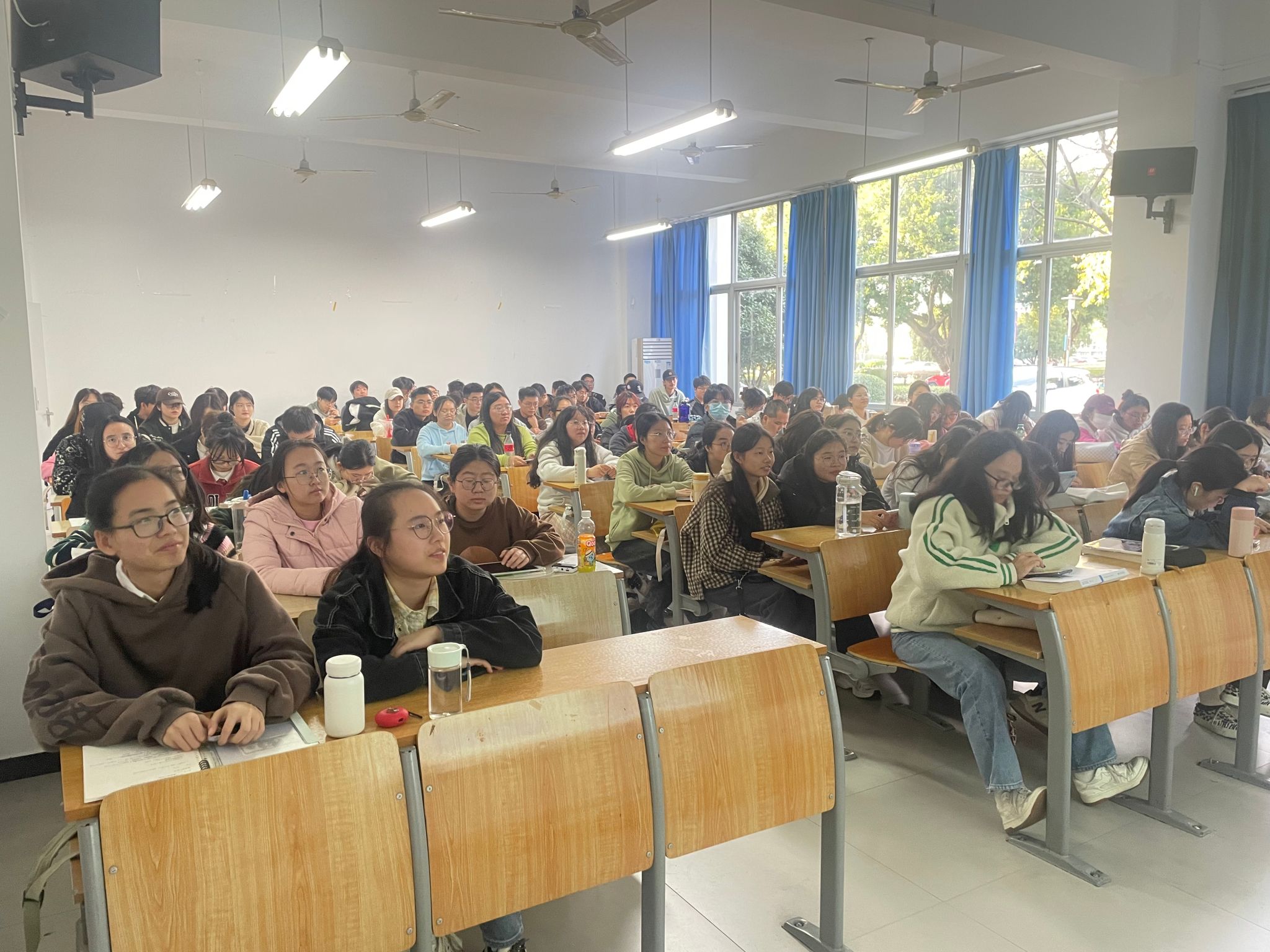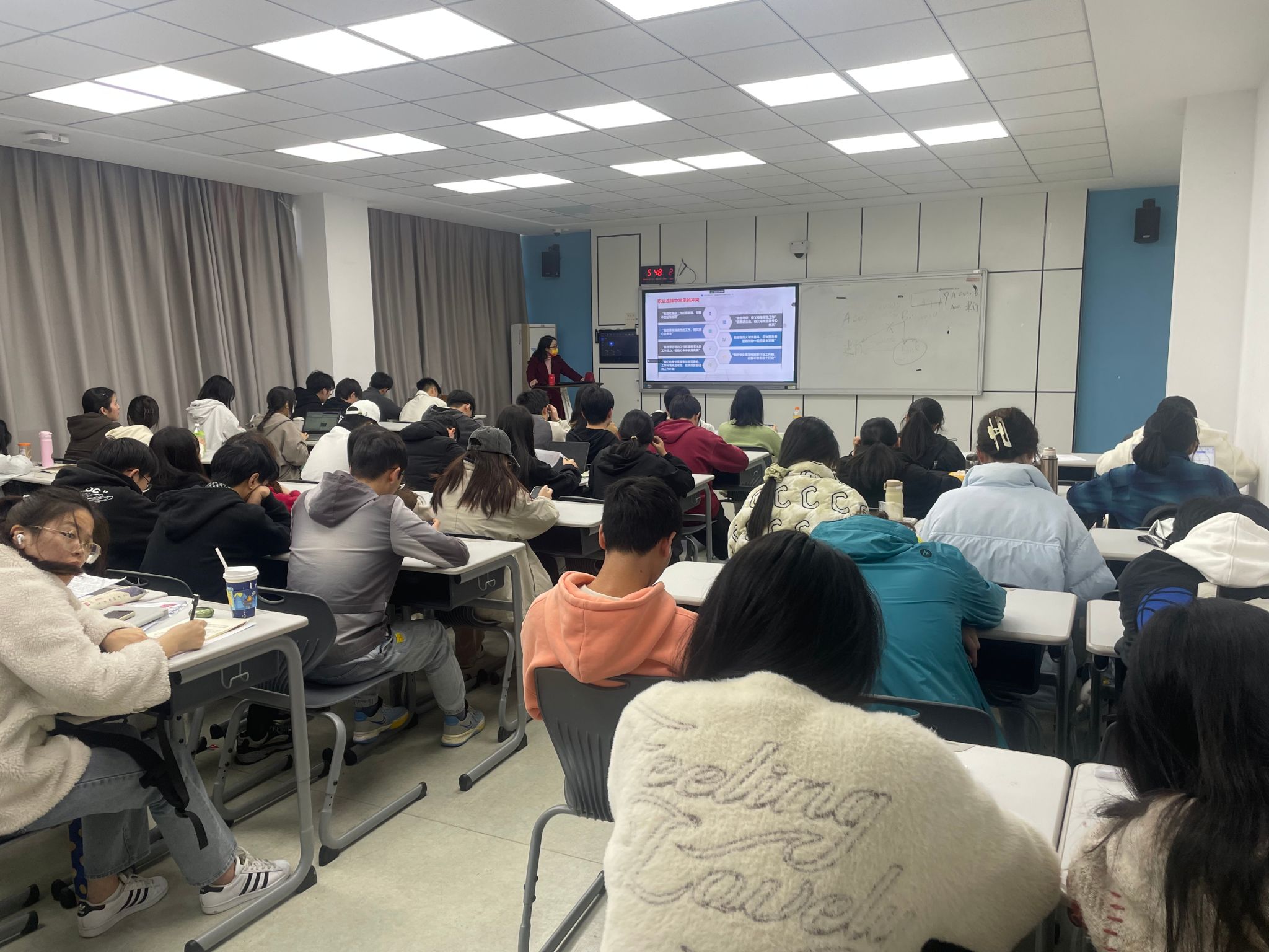 职业生涯发展指导教研室主任朱丽莉副教授以“向左一步,向右一步”为题给学院2021级学生作形势政策专题讲座。