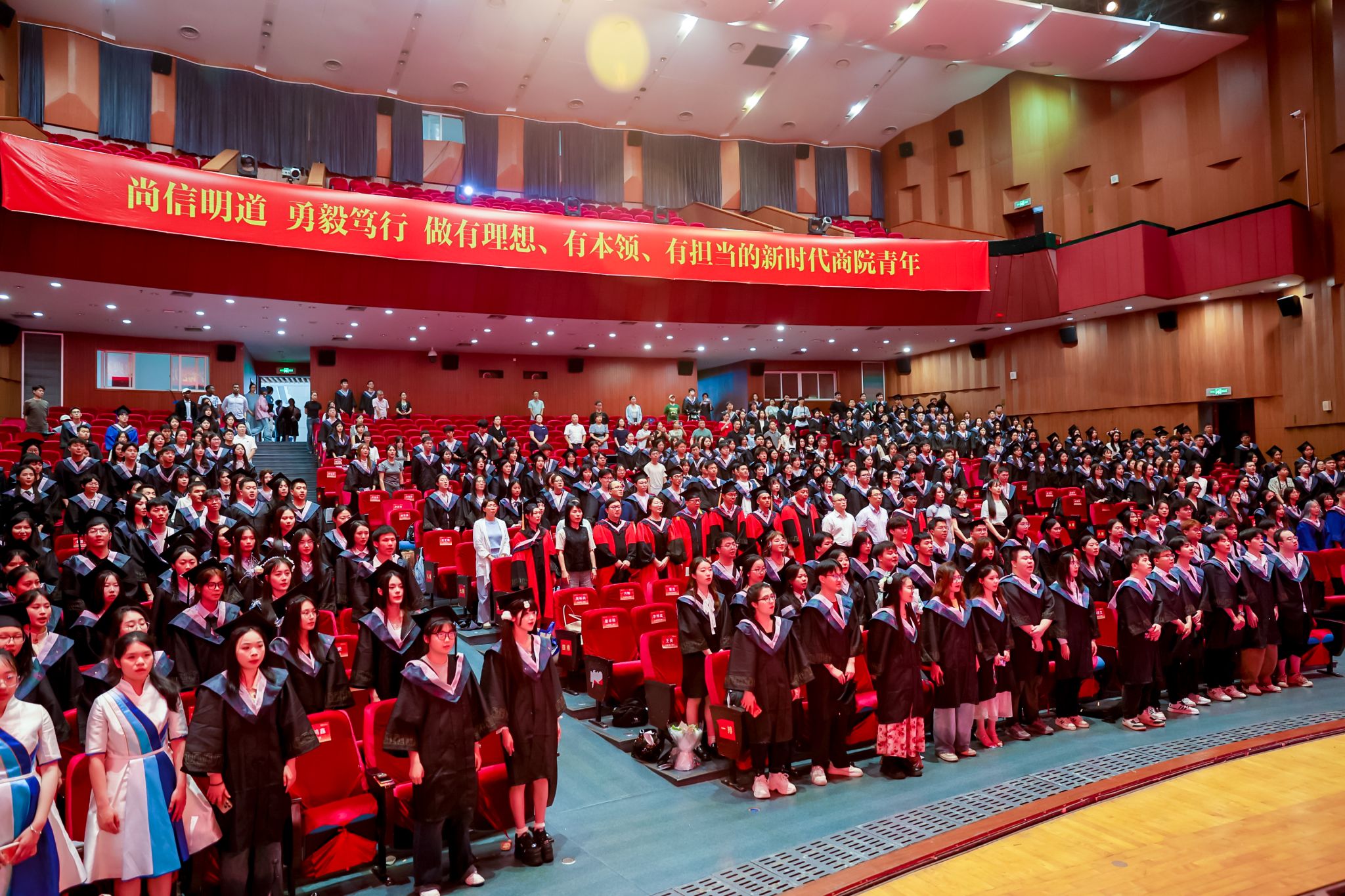 本次毕业典礼暨学位授予仪式在众人肃立、国歌高奏的庄严氛围中正式拉开帷幕。